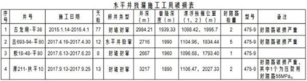 水平井找漏施工工具破損表,張新凱報導
