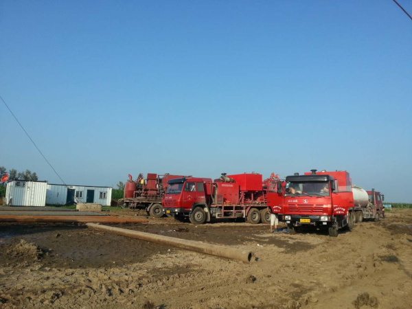 伊22-15-17井,油層套管的固井施工,于2018年7月19日開始,17點30分擺好灰罐和泵車等固井車輛,老天眷顧,天氣不錯,一切準備就緒。 于7月20日早晨7:30施工圓滿完成。本井油層套管完鉆井深2817米,注灰82方(60方低密度+22方原漿),頂替33.8方,水泥漿返出,施工正常。
